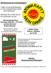Der Arbeitskreis Taunussteiner Energiewende läd ein zu einer Stromwechselparty am Sonntag, den 18.09.2011, von 14:00 bis 18:00 Uhr auf den Bornhof (Bio-Landbetrieb)